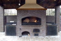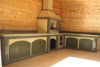 Функциональная печь барбекю включает в себя очаг с грилем и вертелом, плиту для казана, духовку, коптильню, тандыр. Конструкция барбекю также предусматривает свободные поверхности – полочки для размещения приготавливаемых продуктов и кухонной утвари, которая потребуется в процессе приготовления пищи. Также можно предусмотреть разделочный стол и встроенную мойку. Вы можете увидеть фото барбекю в галерее на сайте.